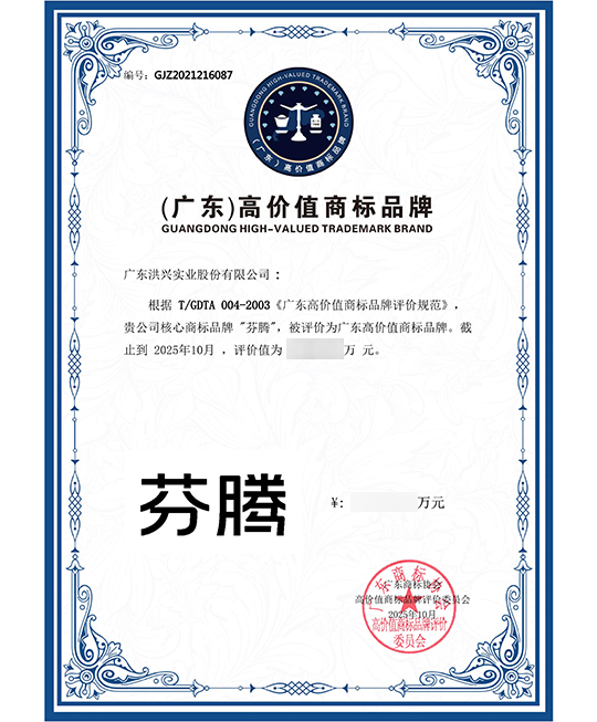 - 芬腾品牌荣获“广东省著名商标”,品牌知名度和美誉度不断提高